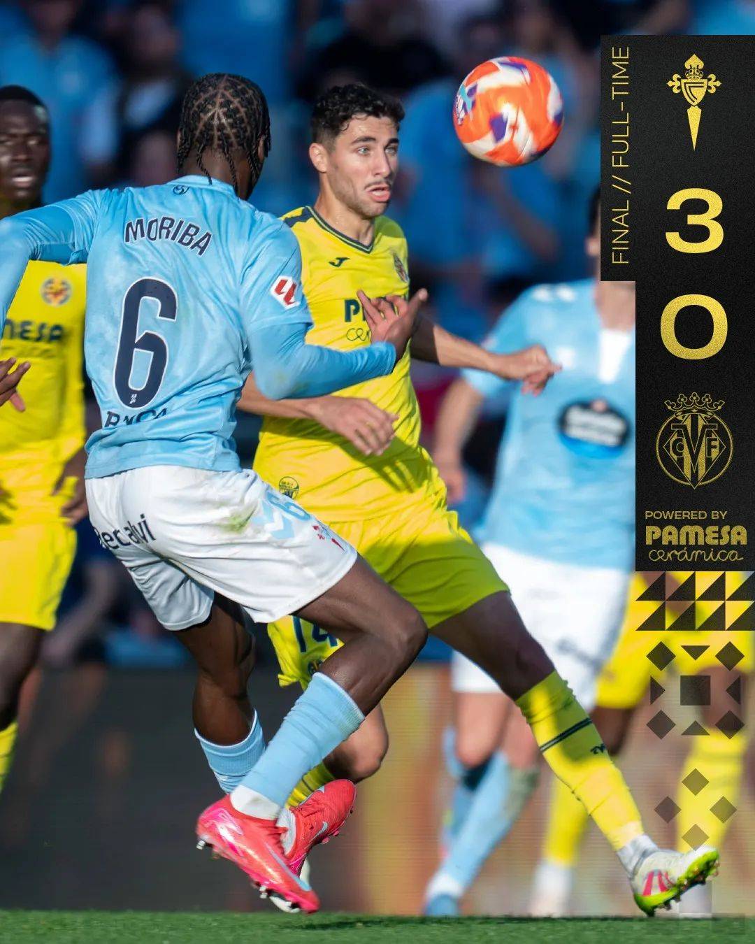 比利亚雷亚尔上轮西甲客场0-3惨败于维戈塞尔塔,相比上周战平皇家社会,比利亚雷亚尔主帅马塞利诺大幅轮换首发阵容。左后卫卡尔多纳停赛被佩德拉萨取代,埃里克拜利和Wily Kambwala担任中卫,他们取代了科斯塔和福伊特。前场轮换幅度较小,佩佩和盖耶取代了佩雷斯、帕雷霍。比利亚雷亚尔开场遭到维戈塞尔塔压制,第37分钟埃里克拜利战术犯规被罚出场。此后占据人数优势的维戈塞尔塔接管比赛,洛佩斯上半场结束前打破僵局。下半场博尔哈伊格莱西亚斯扩大领先优势,替补登场的阿斯帕斯罚入点球,比利亚雷亚尔客场惨败后退出前五,落后第五的皇家贝蒂斯两分。